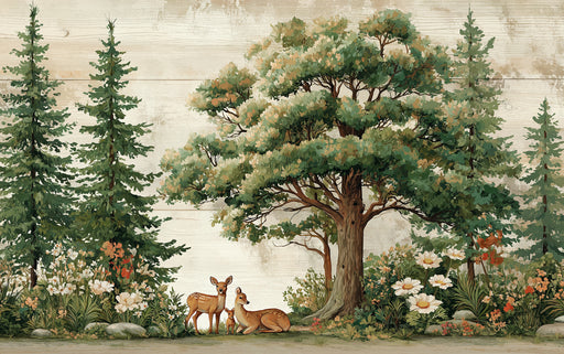 Afficher tous les détailsPapier peint mural rustique Forêt | Cerfs paisibles et végétation luxuriante