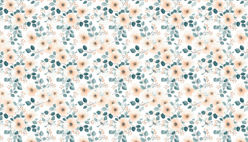 Afficher tous les détailsPapier peint mural floral aquarelle à motif étendu | Pêche et turquoise