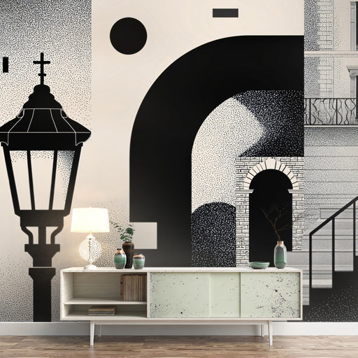 VIVAWALLSPlongez dans l'univers fascinant de l'art abstrait avec ce papier peint captivant, qui présente une composition complexe d'éléments architecturaux ...