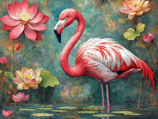 VivawallsCe papier peint présente un grand flamant rose vif sur un arrière-plan de giclées colorées aux tons d'orange, de bleu et de blanc. Le design est an...