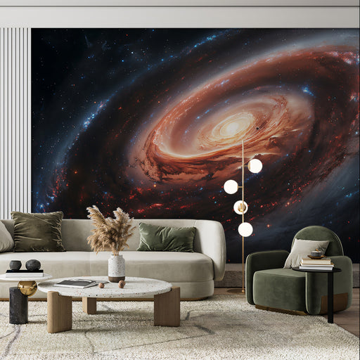 VIVAWALLSThe Dark Cosmic Dust Ring Galaxy Mural Wallpaper offers a dramatic, almost ominous view of a galaxy with a prominent ring structure. The intense, g...