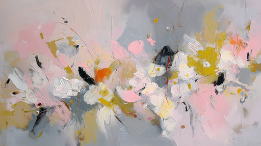 Afficher tous les détailsPapier peint mural floral abstrait et expressif | Art dynamique en rose, jaune et anthracite