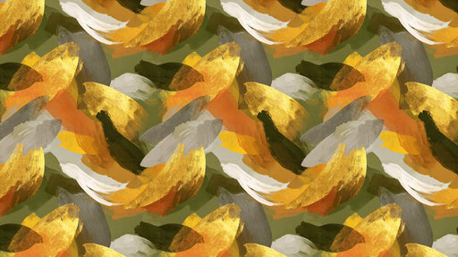 Afficher tous les détailsPapier peint mural abstrait fluide | Art moderne or et olive