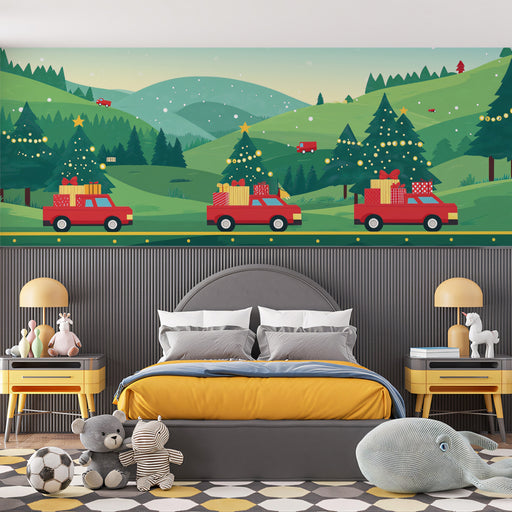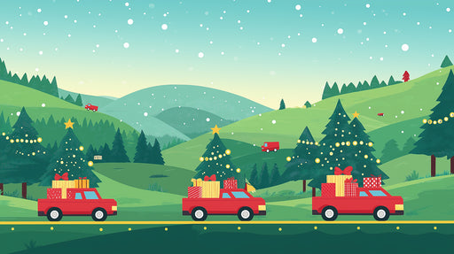Fond d'écran pour un road trip festif rétro | Voitures vintage avec décoration de Noël