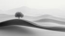 Black and White Solitary Tree in Desert Dunes Mural Wallpaper | Minimalist Landscape