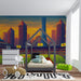 City Skyline Stadium Mural Wallpaper | Urban Metropolis, Vibrant Sunset Colors, Pop Art Aesthetic