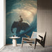 Vivawalls.com’s Tips: Match the moody, deep teal tones with dark wood, leather, and charcoal fabrics. Use hidden, intense warm lighting pointed at the wall to mimic the bright backlighting effect.