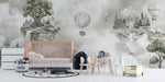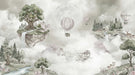 The Enchanted Floating Islands Mural Wallpaper is a magical and imaginative artwork. It features floating landmasses with storybook houses, waterfalls, and pine forests, accompanied by a friendly dragon, a unicorn, and a vintage carriage drifting through a soft cloudy sky. The gentle sepia and muted green tones create a peaceful, adventurous atmosphere. This mural is ideal for a child’s bedroom, a creative playroom, or a space where wonder and fantasy are celebrated.