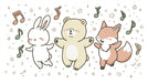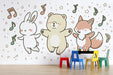Create a space filled with song and starlight. This delightful wall mural features a hand-drawn trio of a bunny, a bear, and a fox dancing among twinkling stars and dancing musical notes. With its soft, gender-neutral pastel palette and heartwarming character design, it provides a soothing yet creative environment that fosters imagination and happiness in any nursery, playroom, or preschool.