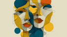 The Geometric Cubist Abstract Faces Mural Wallpaper is a bold and sophisticated artwork. It features multiple overlapping faces deconstructed into geometric blocks, rendered with intricate cross-hatching and a palette of yellow, teal, and terracotta. The structured composition and rich texture create a sense of modern intellectualism and artistic depth. This mural is ideal for a contemporary living room, a professional dining area, or an upscale office.
