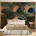 Introduce luxury and vibrant color with this macro peacock feather mural. Focusing on the mesmerizing "eyes" of the feathers, the design showcases rich emeralds, indigos, and warm ambers. This maximalist nature mural acts as a stunning statement piece for a master bedroom, commercial space, or a high-end lounge.