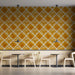 The Modern Quatrefoil Mural Wallpaper is a sophisticated and elegant piece of art. The design features a repeating quatrefoil (four-leaf) pattern, a classic geometric shape beautifully reimagined with a soft, watercolor-like texture. The warm, inviting color palette of brilliant gold and rich orange gives the mural a luxurious glow and a sense of timeless charm. This mural is a perfect choice for an elegant dining room, a stylish cafe, or a powder room that seeks a luxurious, yet refined, backdrop.