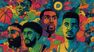 Psychedelic Basketball Stars Mural Wallpaper | Neon Colors, Fluid Lines, Abstract Urban Pop Art