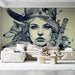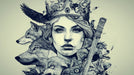 Queen of Wolves and Wilderness Intricate Black White Line Art Fantasy Portrait Mural Wallpaper