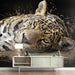Vivawalls.com’s Tips: Enhance the luxury by pairing the mural with dark wood or matte black furniture and rich, tactile materials like black leather or velvet. Use indirect, warm gold lighting (or picture lights) to make the gold splatters and the jaguar's eyes glow.