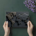 Stone Carved World Map Mural Wallpaper | Natural Rock Texture, Monochrome Gray, Elemental Earth Art