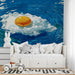 Surreal Fried Egg Water Splash Mural Wallpaper | Quirky Pop Art, Modern Kitchen Design