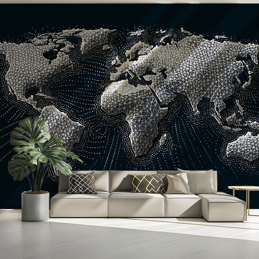 Consigli di Vivawalls.com: Entra nel dramma moderno. Abbinatelo con mobili lucidi e lampade minimaliste che emettono luce a tonalità fredde (LED). Utilizza rifiniture bianche o cromate per riflettere gli elementi luminosi del murale.
