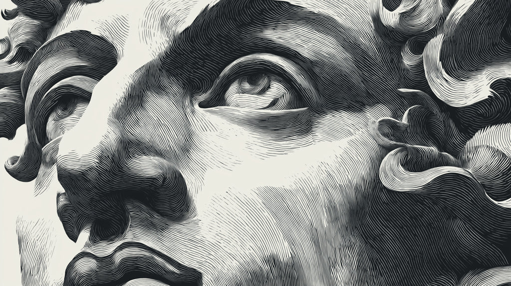 Arreda il tuo spazio con il fascino senza tempo dell'arte classica grazie a questo affascinante sfondo, che presenta un dettagliato ritratto in stile incisione di una scultura classica. Le linee intricate e le sfumature catturano la profonda bellezza ed emozione della forma umana, richiamando alla mente i maestri del Rinascimento. Realizzato in una sofisticata palette monocromatica di bianco e nero, l'opera enfatizza l'esquisita maestria artigianale e il drammatico gioco di luci e ombre. Questa illustrazione è perfetta per creare un’elegante, intellettuale e raffinata atmosfera in studi, salotti o qualsiasi ambiente che apprezzi l'arte, la storia e l’estetica classica.