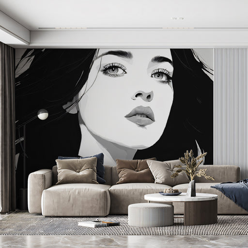 Arreda il tuo spazio con uno stile sofisticato grazie a questa affascinante carta da parati, che presenta un'elegante donna con un cappello a tesa larga il cui volto è leggermente nascosto, aggiungendo un'aria di mistero. La figura è rappresentata con linee astratte e forme geometriche in una palette smorzata di grigio, nero e delicati rosa, creando un senso di modernità, fascino e eleganza artistica. Cerchi astratti e linee dinamiche sullo sfondo accentuano l'atmosfera contemporanea e fluida. Questa illustrazione è perfetta per creare un'atmosfera chic, artistica e moderna in camere da letto, aree guardaroba o qualsiasi spazio che apprezzi l'arte contemporanea della moda e il design astratto.