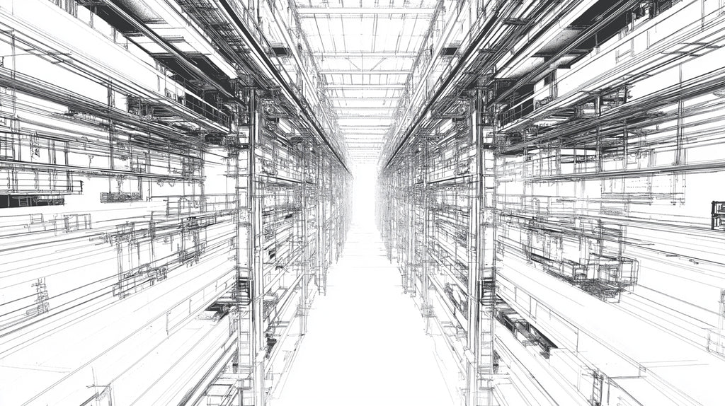 Entra in uno spazio visionario con questa affascinante carta da parati, che presenta un disegno a linee di una hall o corridoio architettonico futuristico altamente dettagliato. Realizzato con intricate linee nere su uno sfondo bianco nitido, il design mette in mostra una complessa rete di strutture, piattaforme e pareti che si allontanano, creando un senso di grande profondità, complessità all'avanguardia e possibilità illimitate. Lo stile preciso del disegno architettonico evoca un senso di innovazione, grandiosità sci-fi e artigianato dettagliato. Questa illustrazione è perfetta per creare un'atmosfera moderna, intellettuale e ispiratrice in studi, camere da letto o qualsiasi spazio che apprezzi l'estetica futuristica e l'arte tecnica.