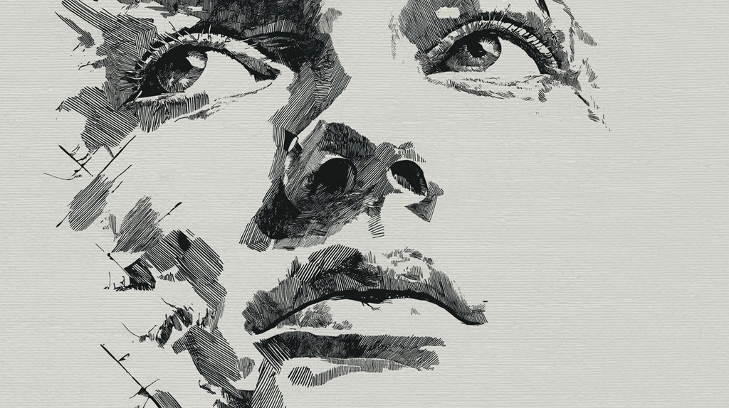 Aggiungi un margine di sicurezza di 6-10 cm. L'area totale è calcolata in metri quadrati e arrotondata al numero intero più vicino.Intense Gaze Etched Portrait Wallpaper | Expressive Monochrome Face Art
