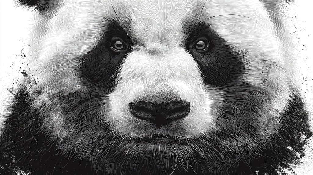 Aggiungi un margine di sicurezza di 6-10 cm. L'area totale è calcolata in metri quadrati e arrotondata al numero intero più vicino.Potente ritratto inciso di Panda | Arte espressiva in bianco e nero della fauna selvatica