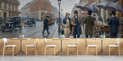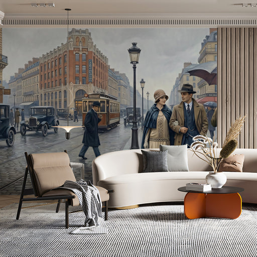 Vivawalls Store· Step into the golden age of glamour with this breathtaking vintage Paris mural. Featuring a romantic rainy street scene with classic automobiles,...
