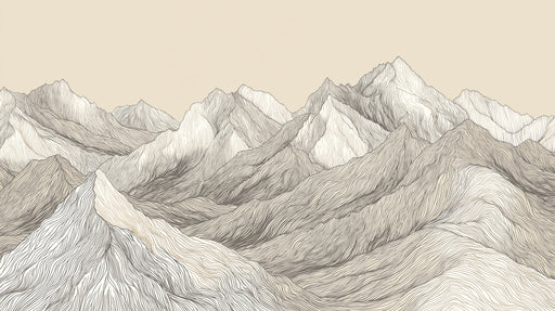 Vivawalls StoreThe Intricate Line Art Mountain Ridge Mural Wallpaper features a highly detailed drawing of overlapping mountain ranges. The art uses fine, wavy li...