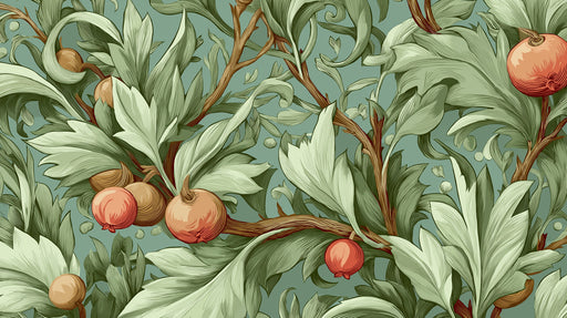 Visualizza tutti i dettagliCarta da parati con frutta e foglie di frutteto | Arte botanica Art Nouveau