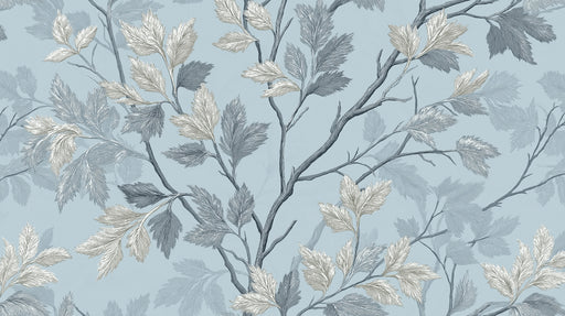 Visualizza tutti i dettagliCarta da parati con ramo sussurrante | Arte fogliare argento e blu