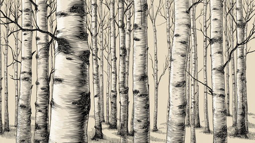 Visualizza tutti i dettagliCarta da parati con foresta di betulle classica | Legno disegnato a mano