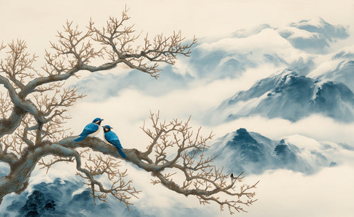 Visualizza tutti i dettagliMurale tecnica lavagna cinese tradizionale | Uccelli blu e montagne nebbiose