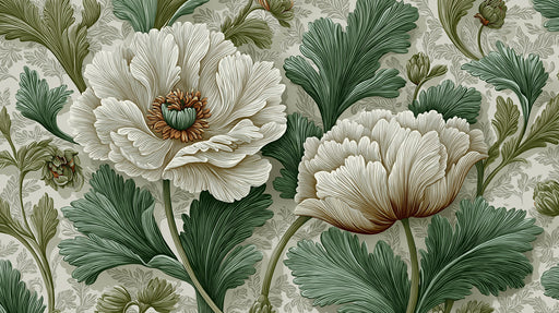 Visualizza tutti i dettagliAffresco Murale Floreale di Peonie Vintage | Motivo Botanico Elegante