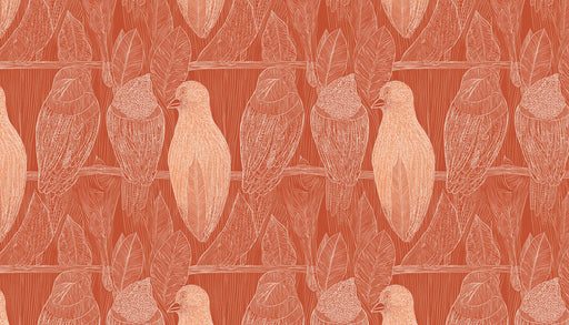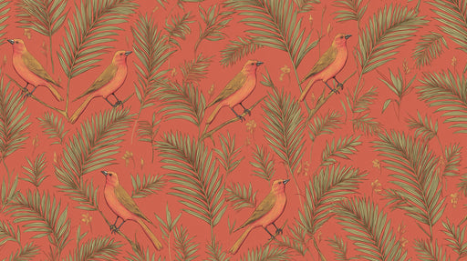Classic Botanical Bird Mural Wallpaper | Small-Scale Terracotta Print