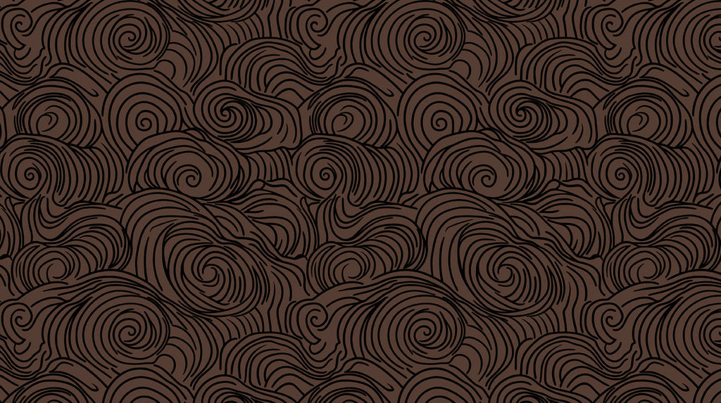 Aggiungi un margine di sicurezza di 6-10 cm. L'area totale è calcolata in metri quadrati e arrotondata al numero intero più vicino.Carta da parati murale a motivi a spirale | Linee artistiche marroni scuro su nero