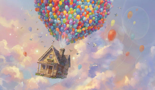 Little Joy· Transform your child's room with this magical mural of a house floating with thousands of colorful balloons. This whimsical artwork inspires adve...