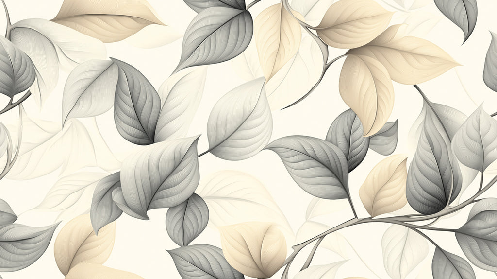 Aggiungi un margine di sicurezza di 6-10 cm. L'area totale è calcolata in metri quadrati e arrotondata al numero intero più vicino.Carta da parati murale con foglia color taupe e beige | Design botanico artistico