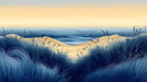 Questo sfondo mostra una scena serena di spiaggia con un cielo azzurro chiaro, nuvole bianche e soffici e l'oceano che si estende fino all'orizzonte. Nel primo piano si vedono alcune dune di sabbia color crema con erbe alte. L'effetto complessivo è calmante e rinfrescante, rendendo il soggiorno simile a un rifugio costiero. Può portare un senso di tranquillità e apertura allo spazio.