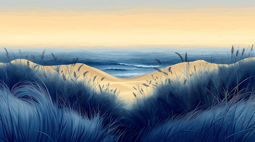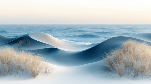 Visualizza tutti i dettagliCarta da parati murale con scena di spiaggia in soggiorno | Blu, bianco e beige spiaggia e cielo