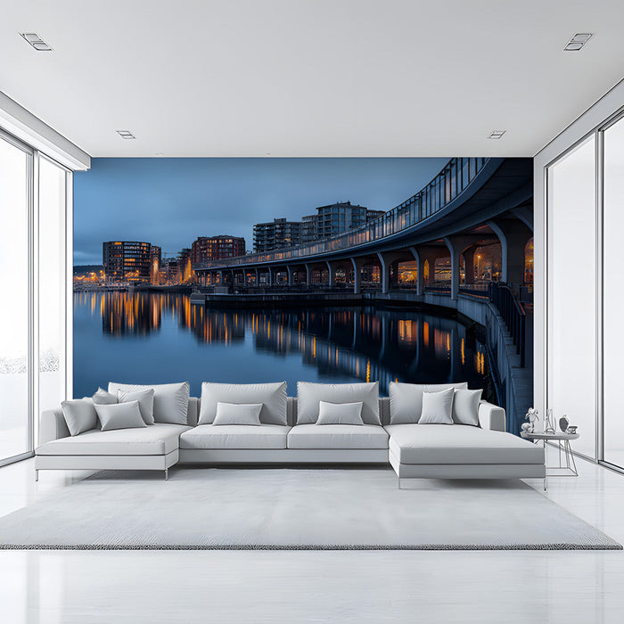 Carta da parati murale moderno del paesaggio urbano sul fiume | Decorazione urbana contemporanea