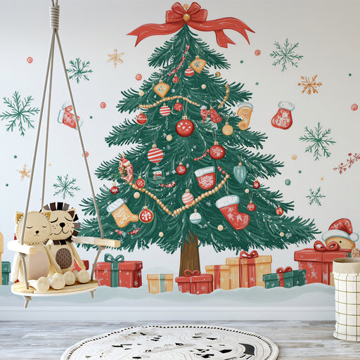 VIVAWALLSQuesto splendido murale cattura perfettamente la magia e l'eccitazione del mattino di Natale. Un albero di Natale splendidamente decorato, illumina...