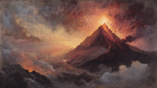 Vivawalls StoreA powerful and dramatic oil painting style mural depicting a volcano in mid-eruption. Glowing lava flows down the dark mountain while smoke and ash...