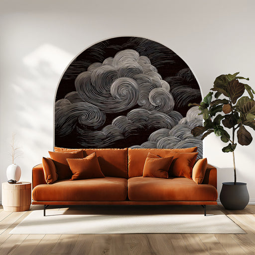 Visualizza tutti i dettagliMurale con Carta da Parati a Nuvole Astratte Vorticose | Arte del Cielo Monocromatica Testurizzata
