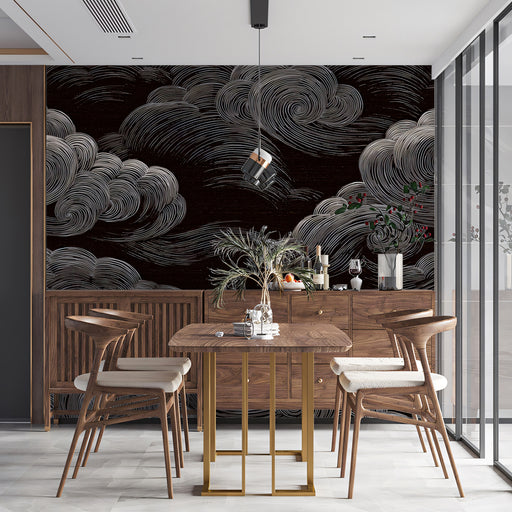 Visualizza tutti i dettagliMurale con carta da parati a nuvole vorticose astratte | Arte del cielo monocromatica malinconica