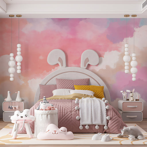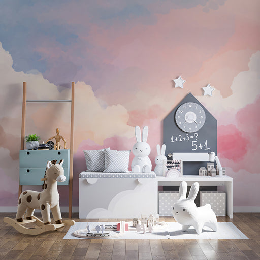 Visualizza tutti i dettagliCarta da parati murale con cielo rosa chiaro e blu | Nuvole astratte ad acquerello