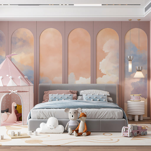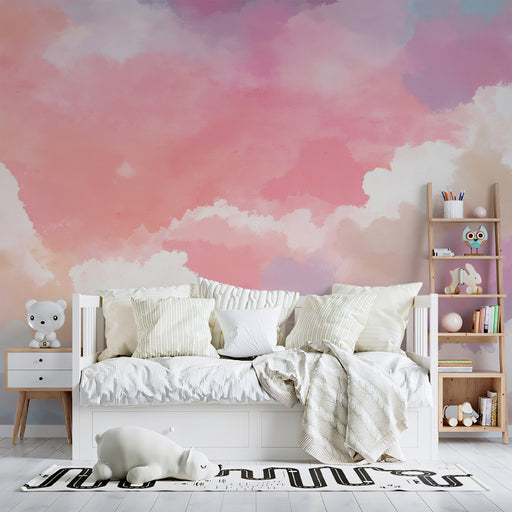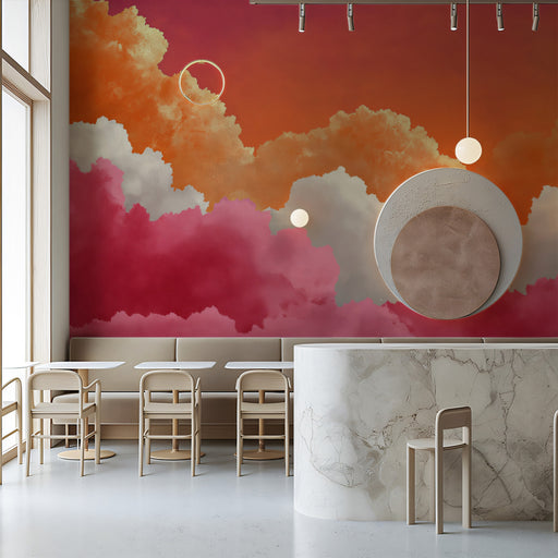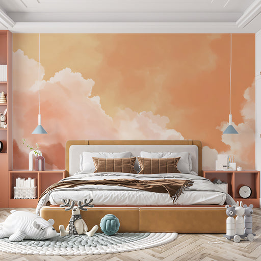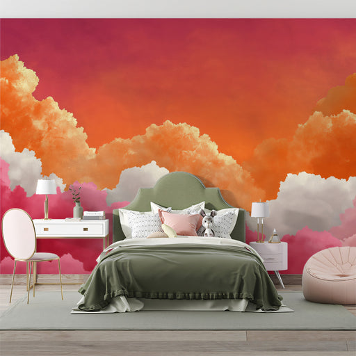 Visualizza tutti i dettagliCarta da parati murale paesaggio nuvoloso sognante | Cielo stilizzato rosa e arancione