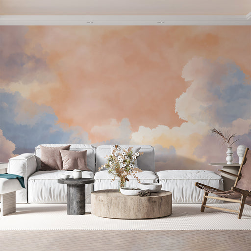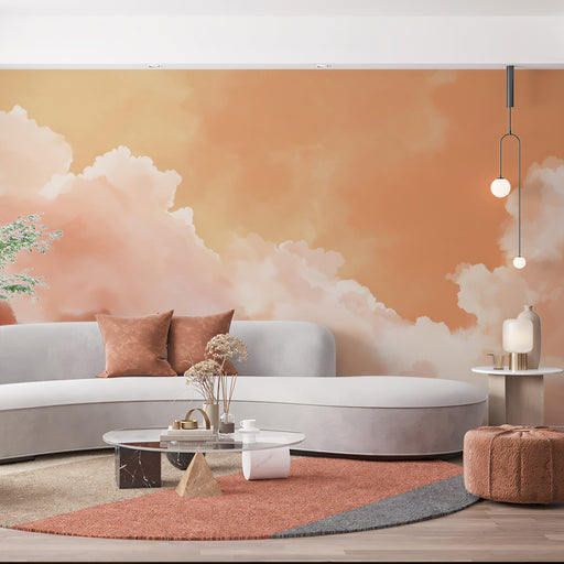 Visualizza tutti i dettagliMurale cielo tramonto caldo | Nuvole acquerello astratte in arancione e pesca