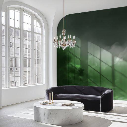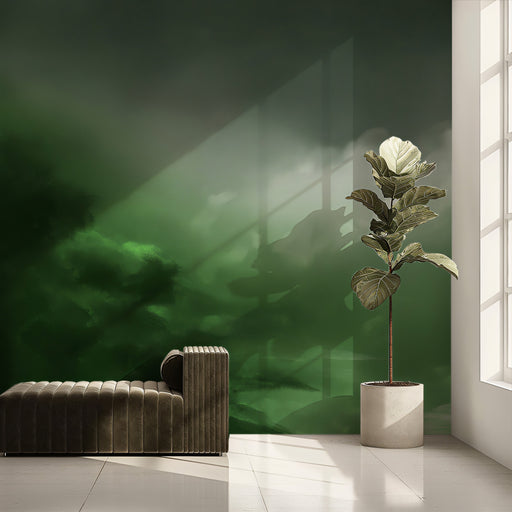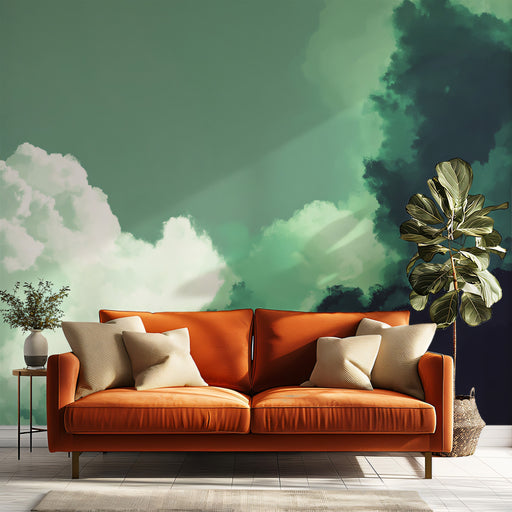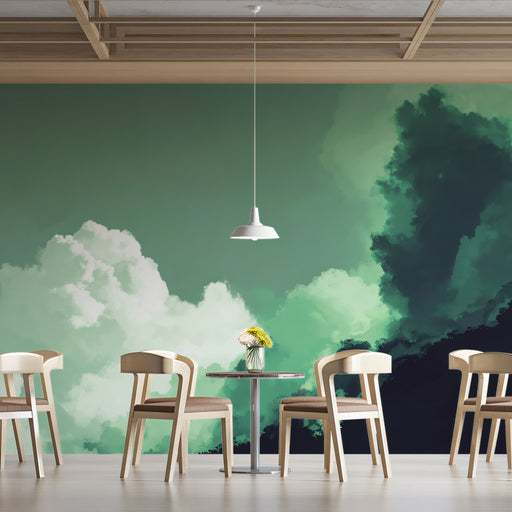 VIVAWALLSIl Riassunto Green Cloud Mural Wallpaper è un'opera d'arte serena e calmante. Il design presenta una composizione pacifica e stratificata di form...