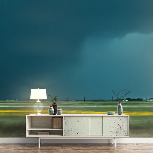 Visualizza tutti i dettagliCarta da parati murale campo tempestoso astratto | Smorzato e cupo
